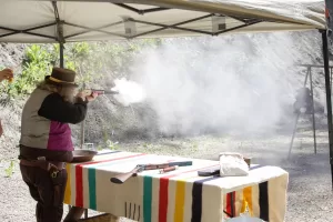 Cowboy Action is a competitive multigun discipline where competitors dress in period appropriate clothing and shoot old west pistols, rifles and shotguns to hit a predetermined number of targets the fastest.